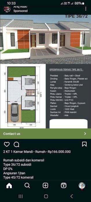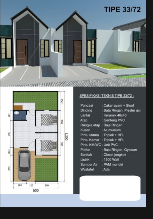Luas Tanah: 72 M2Luas Bangunan: 36 M2Kamar Tidur: 2Kamar Mandi: 1Tingkat: 1Type 36/72 Dinding hebel di plester dan di aciKramik 50*50Kusen aluminium Rangka atap baja ringan Dll #rumahsubsidibaru #rumahsubsiditerlaris #rumahsubsiditerbaru #rumahsubsididijual #rumahsubsidiciamis #rumahsubsidicijeungjing #rumahsubsidibojongmengger