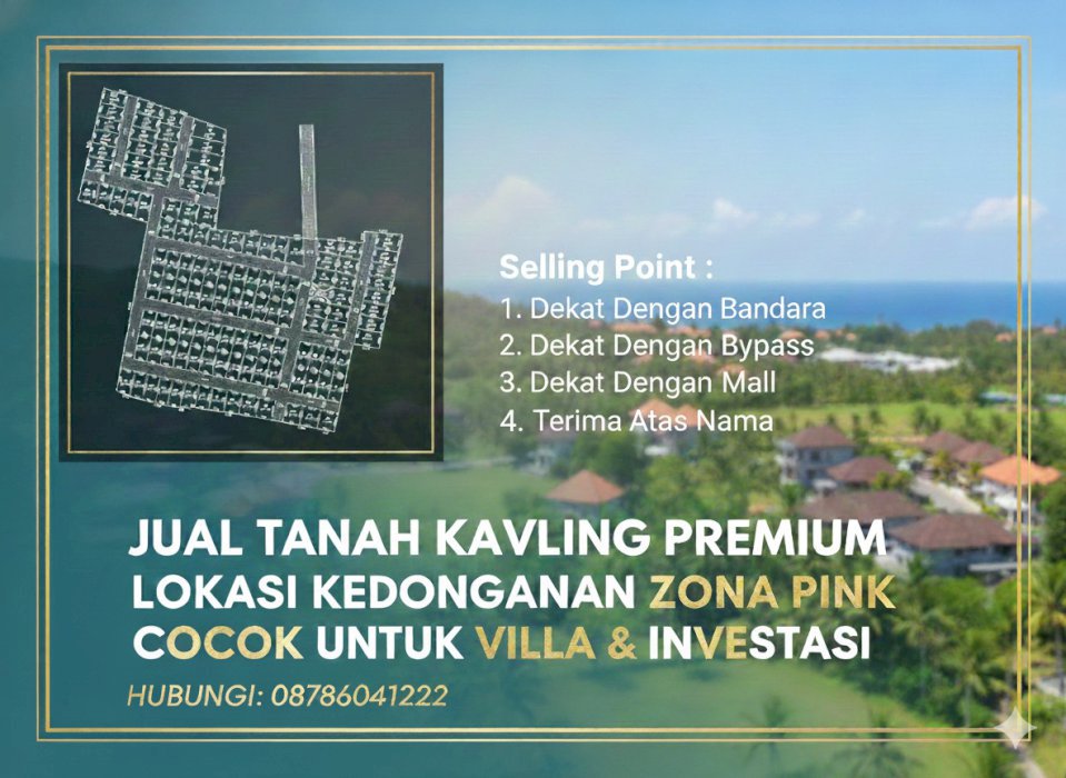 Luas Tanah: 100 M2ASET PREMIUM DI KAWASAN VILLA: INVESTASI CERDAS DENGAN AKSESIBILITAS PRIMA Miliki sebidang tanah kavling eksklusif yang memiliki 126 kavling berlokasi di jantung kawasan hunian dan villa yang tenang. Harga per kavling 800 jt /100 m2Sebuah peluang langka untuk mengamankan aset properti dengan Zona Pink (Kawasan Pariwisata), yang menjamin keamanan legalitas dan fleksibilitas untuk pembangunan, baik untuk hunian pribadi maupun komersial (Villa Rental). KEUNGGULAN LOKASI & AKSES Terletak sangat strategis dengan konektivitas yang efisien: 5 Menit menuju jalan utama Bypass. 10 Menit menuju Bandara Internasional I Gusti Ngurah Rai. Berada di lingkungan Villa yang sudah terbentuk, menawarkan suasana yang privat, nyaman, dan berkelas. SPESIFIKASI LAHAN Luas Tanah: Mulai dari 1 Are (100 m), ukuran ideal untuk villa modern. Akses Jalan: Lebar 5 meter (nyaman untuk mobil berpapasan). Zonasi: Zona Pink (Aspek Tata Ruang Pariwisata/Siap Bangun).PENAWARAN SPESIAL Harga mulai Rp 800 Juta. (Harga sangat kompetitif mengingat lokasi berada di kawasan berkembang dengan kenaikan capital gain yang menjanjikan).Sangat cocok bagi Anda yang mencari instrumen investasi properti jangka panjang atau berencana membangun villa impian di Bali.INFORMASI LEBIH LANJUT & JADWAL SURVEI Silakan hubungi kami melalui WhatsApp untuk mendapatkan detail site plan dan konsultasi: 087860411222 087860411222#tanahkavlingbaru #tanahkavlingterlaris #tanahkavlingterbaru #tanahkavlingdijual #tanahkavlingbadung #tanahkavlingkutaselatan